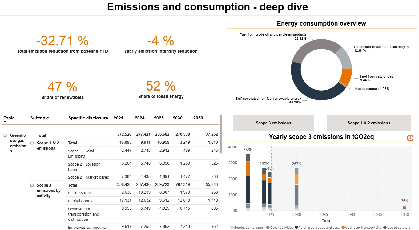 Driven by our decarbonization efforts, in 2025, scope 1 and 2 emissions were 53% lower than our 2021 baseline, while our scope 3 emission reduction goal were already reached with a 33% reduction compared to the baseline. Read more about our decarbonization strategy in our 2025 Annual Report.